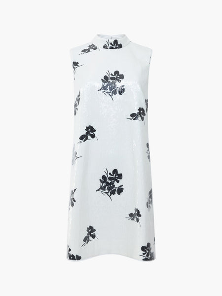A little sparkle goes a long way. Our Madeline Floral Sequin Sleeveless Dress features a sleeveless silhouette in a monochrome floral print and all-over sequins.
