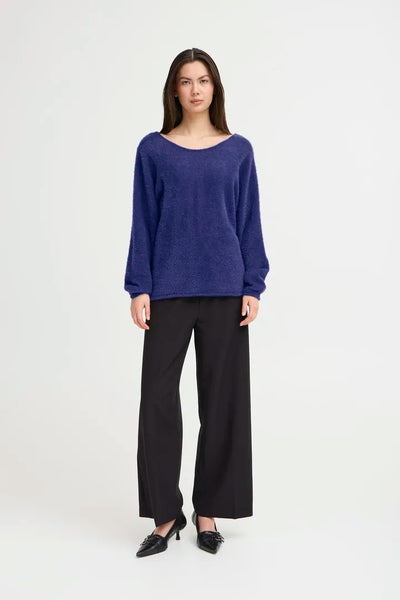 Ichi V-back Button Knit Jumper