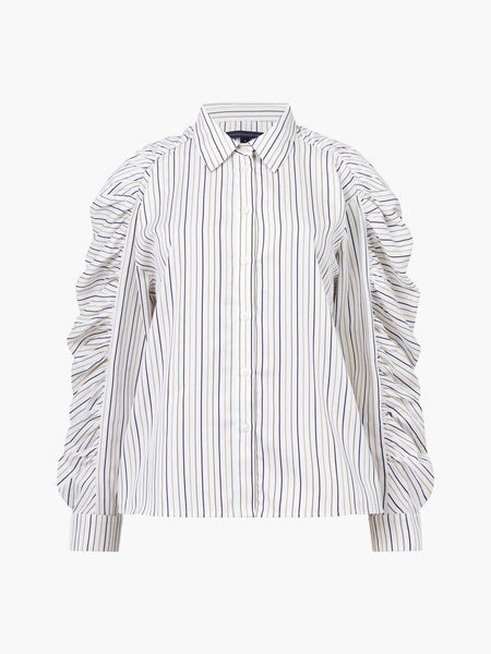 Classic tailoring meets modern flair with our Cambria Stripe Cotton Button Down Shirt. This stripe print shirt partners its traditional collar and button-down fastening with a pair of long ruched sleeves.