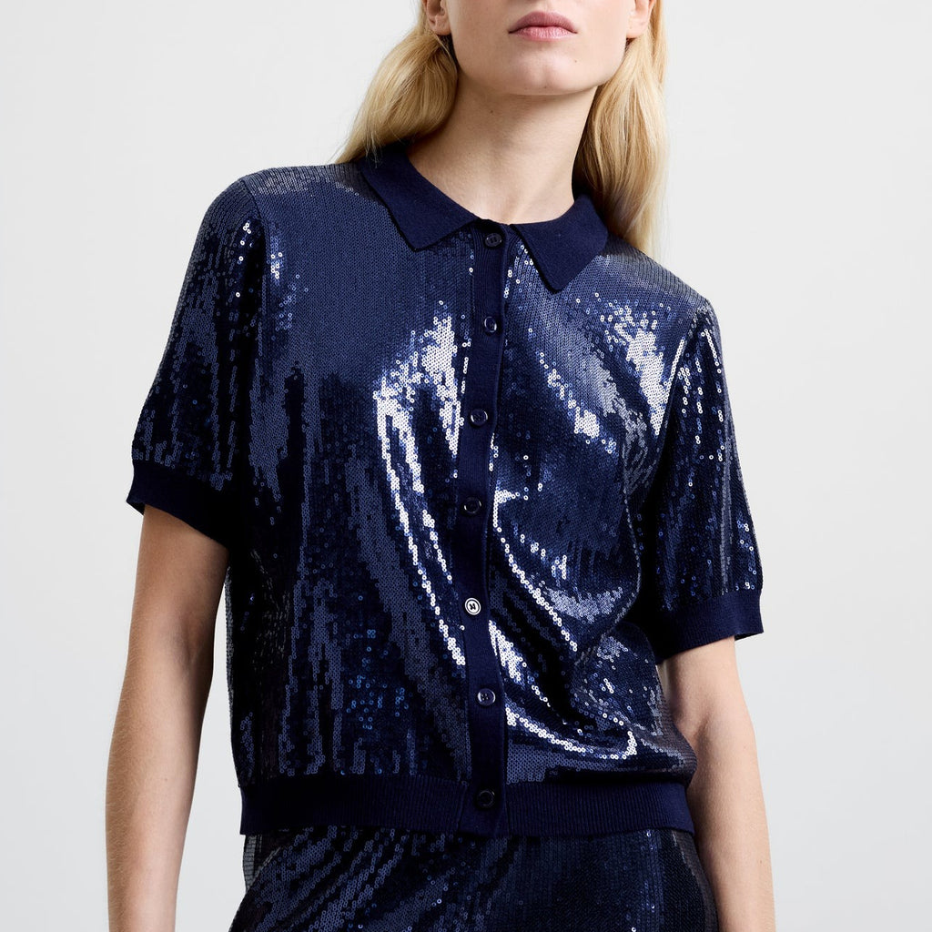 Hannah Knit Sequin Short Sleeve Shirt
