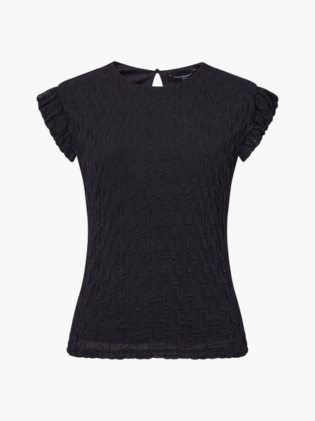 Our Wanda Textured Jersey Peplum Top is here to top up your wardrobe with a touch of texture. This chic black top features a textured overlay, complimented by frill cap sleeves and a flattering subtle peplum hem.